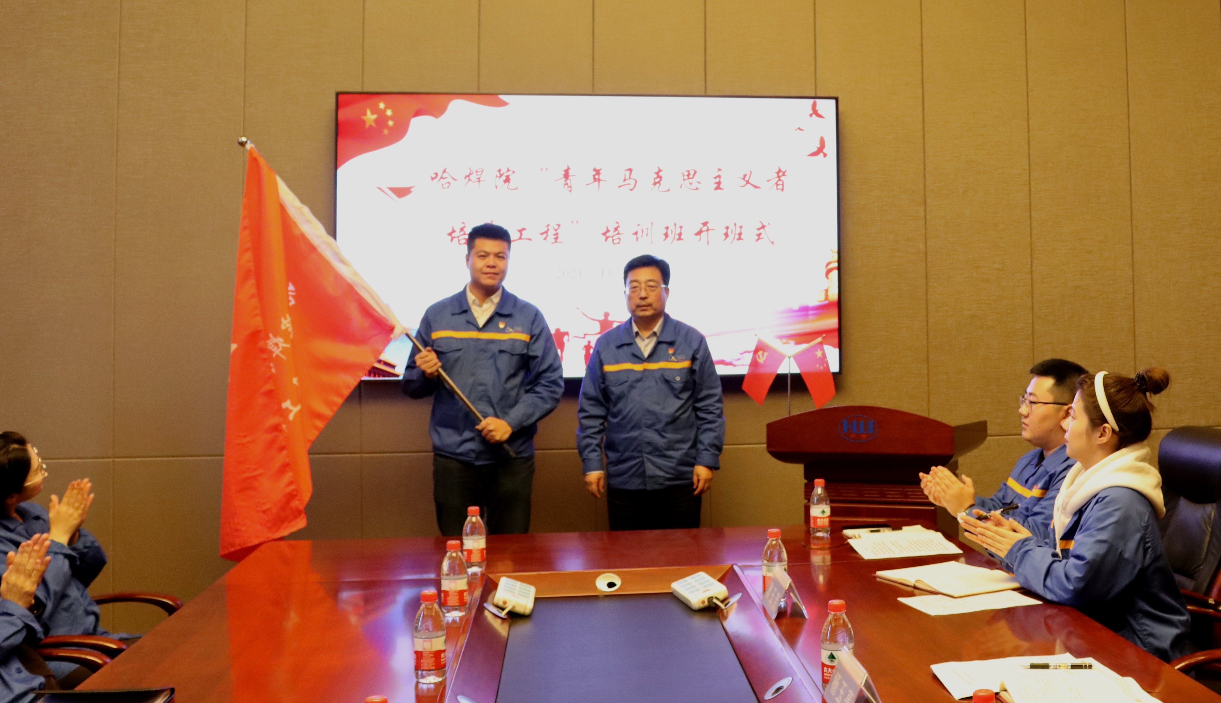 開(kāi)班式在雄壯的國(guó)歌聲中拉開(kāi)序幕,雷振同志介紹了“青馬工程”的歷程及重要意義,同時(shí)介紹了《哈焊院青年馬克思主義者培養(yǎng)工程實(shí)施方案》。班長(zhǎng)郝龍宇詳細(xì)介紹了《2021年哈焊院“青馬工程”培養(yǎng)計(jì)劃》。隨后,楊玉亭同志為“青馬工程”培訓(xùn)班授旗,學(xué)員代表烏彥全、付傲作表態(tài)發(fā)言,充分表達(dá)聽(tīng)黨話、跟黨走,砥礪奮進(jìn)、激揚(yáng)青春,做堅(jiān)定的馬克思主義者的決心。