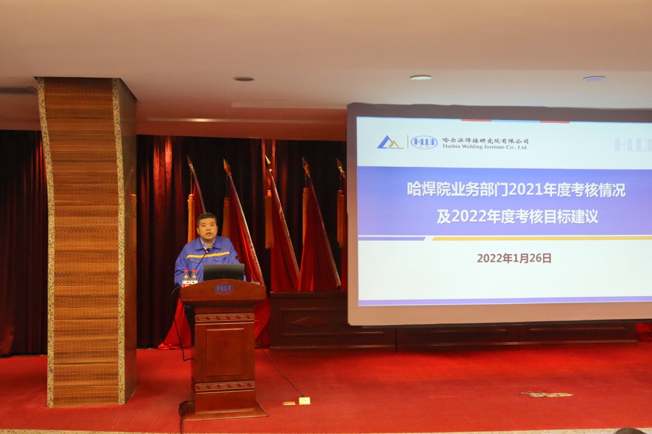 年度工作會議上,總經(jīng)理、黨委副書記雷振傳達(dá)學(xué)習(xí)了全國安全生產(chǎn)電視電話會議及總院集團(tuán)2022年度工作會議精神,并代表領(lǐng)導(dǎo)班子作了題為《強(qiáng)化務(wù)實(shí)擔(dān)當(dāng) 攻堅(jiān)改革創(chuàng)新 聚力提質(zhì)增效 全力以赴推進(jìn)“十四五”高質(zhì)量發(fā)展》的工作報(bào)告,全面回顧了2021年度工作,對2022年重點(diǎn)工作進(jìn)行了部署。2021年哈焊院堅(jiān)決貫徹落實(shí)黨中央、國務(wù)院、總院集團(tuán)決策部署,以“十四五”戰(zhàn)略規(guī)劃為引領(lǐng),堅(jiān)持深化業(yè)務(wù)工作與黨建工作的雙向互融,提效能、搶先機(jī)、創(chuàng)新績,較好完成了年度工作目標(biāo),公司改革發(fā)展和黨的建設(shè)取得了新的重要進(jìn)展和顯著成效。2022年哈焊院將堅(jiān)持以習(xí)近平新時(shí)代中國特色社會主義思想為指導(dǎo),深入貫徹落實(shí)黨的十九大和十九屆歷次全會精神,全面貫徹新發(fā)展理念,加快融入新發(fā)展格局,充分發(fā)揮黨建領(lǐng)航作用,堅(jiān)持穩(wěn)中求進(jìn)工作總基調(diào),堅(jiān)持創(chuàng)新驅(qū)動,推動高質(zhì)量發(fā)展,決戰(zhàn)決勝國企改革三年行動,努力實(shí)現(xiàn)總院集團(tuán)“雙倍增”戰(zhàn)略年度分解目標(biāo)。