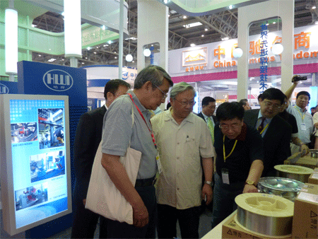 本屆展會上我所展臺以整體形象圖片展示為主,輔以特種焊接材料樣品實物,如鍋爐石化用焊材、低合金高強鋼焊絲、特種不銹鋼焊絲、耐磨堆焊藥芯焊絲、碳鋼、鎳基等材料。這些材料及設備都吸引了許多新老用戶,觀眾絡繹不絕,有效的進行溝通與交流,更有利于我所未來銷售發(fā)展。其中,大批觀眾包括眾多外商對展出的不銹鋼焊絲表現(xiàn)出濃厚的興趣,對光亮的焊絲外觀和精致的包裝贊不絕口,是我所此次展覽的一個亮點。