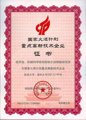 根據(jù)國家火炬中心關于組織申報國家火炬計劃重點高新技術企業(yè)的文件精神,我所技術質(zhì)量部主持編寫了我所的申報材料,經(jīng)過省主管部門初審通過,上報國家火炬中心,經(jīng)國家火炬中心組織專家評審,認定我所為國家重點高新技術企業(yè)。