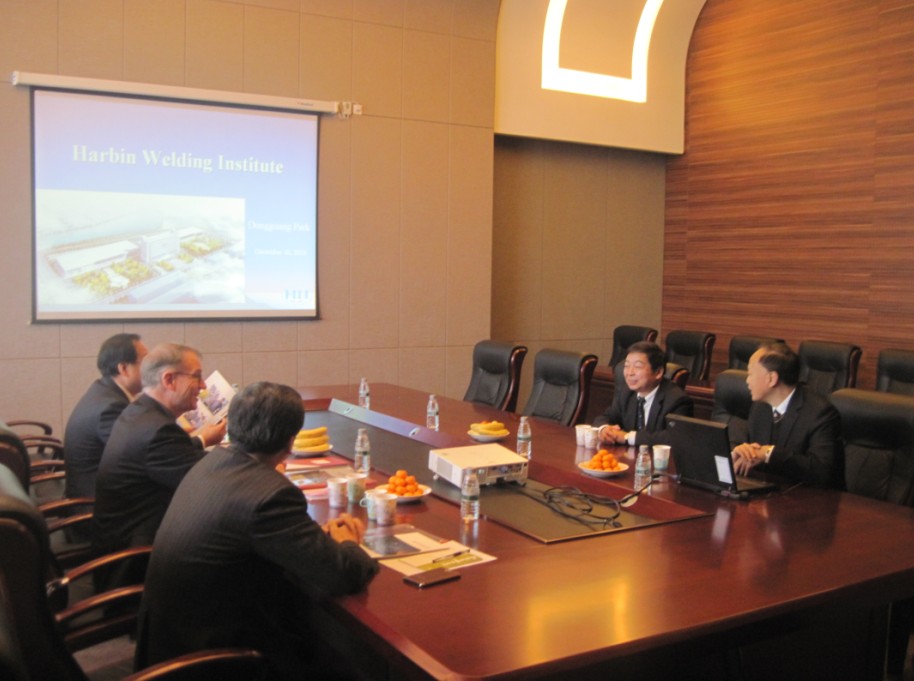 何實所長首先對客人的來訪表示熱情歡迎,并簡單介紹了焊接研究所的情況。樸東光秘書長通過幻燈片向客人們展示了我所的發(fā)展歷程、機構(gòu)及業(yè)務(wù)分類、科研、產(chǎn)業(yè)、質(zhì)檢、行業(yè)服務(wù)等方面的工作內(nèi)容和成效。克勞斯米德爾道夫先生向我所的盛情接待表示感謝,對哈焊所多方面卓有成效的成就表示欽佩和贊賞。雙方就焊接及連接技術(shù)的發(fā)展、培訓(xùn)及標(biāo)準(zhǔn)化、行業(yè)服務(wù)等內(nèi)容進(jìn)行了交流。何實所長還向客人介紹了我所英文版焊接期刊《China