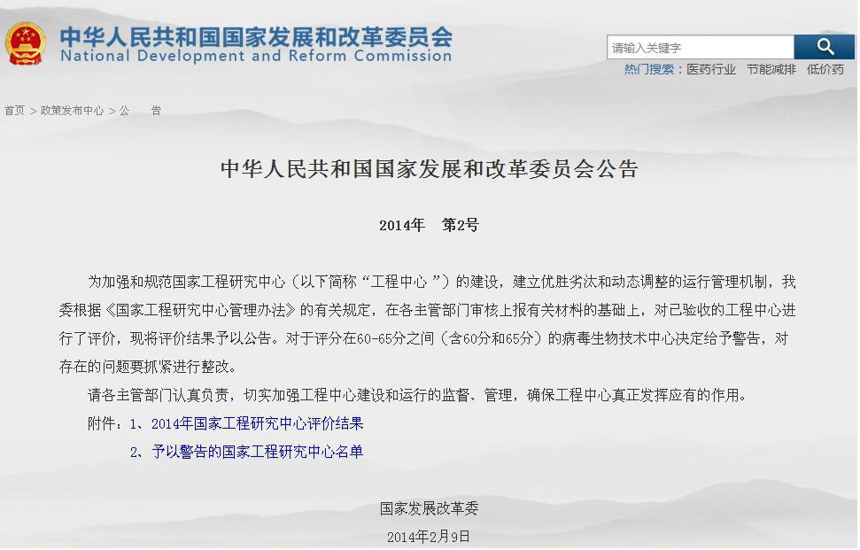 2011-2012年度國(guó)家工程研究中心評(píng)價(jià)工作,從2013年3月展開(kāi),經(jīng)過(guò)專(zhuān)家組近一年的綜合評(píng)審工作,于2014年2月由國(guó)家發(fā)改委2號(hào)公告(見(jiàn)圖2)宣布評(píng)價(jià)結(jié)果,哈爾濱焊接研究所高效焊接新技術(shù)國(guó)家工程研究中心,由上屆86個(gè)國(guó)家級(jí)中心參評(píng)排名63,到本屆90個(gè)國(guó)家級(jí)中心參評(píng)排名27,獲得有史以來(lái)排名最前的佳績(jī),取得80.3分,爭(zhēng)得申報(bào)國(guó)家重大項(xiàng)目的優(yōu)先權(quán)。此次成績(jī)的獲得是國(guó)家投資給我們搭建了展示的平臺(tái),與中心創(chuàng)新能力建設(shè)項(xiàng)目息息相關(guān)?!?br/>