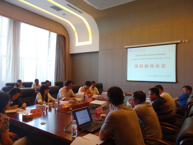 2014年8月29日,機(jī)械科學(xué)研究總院組織項目驗收專家小組,在機(jī)械科學(xué)研究院哈爾濱焊接研究所召開了總院技術(shù)發(fā)展基金重點項目“大跨度龍門式激光—電弧復(fù)合焊接機(jī)器人工作站”