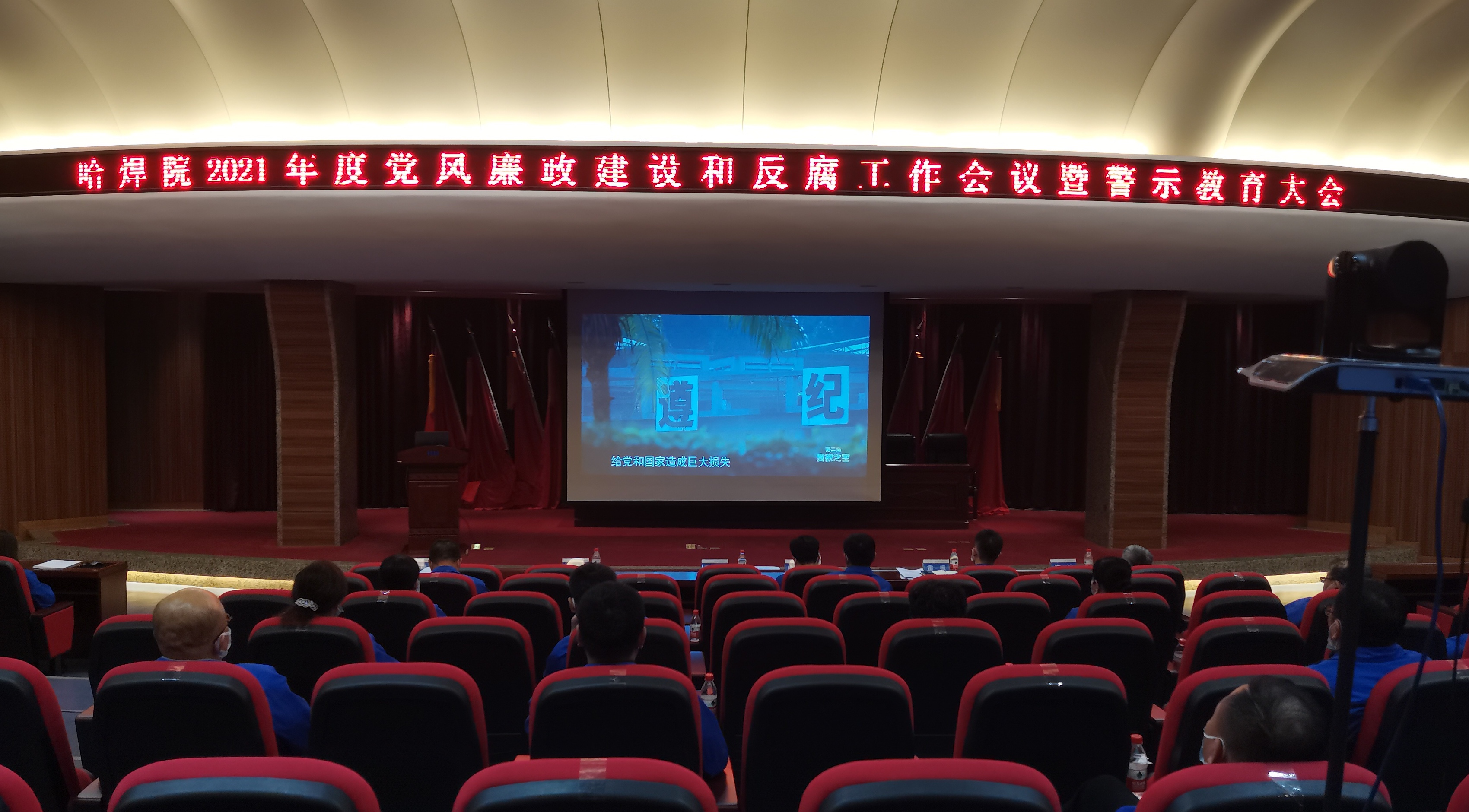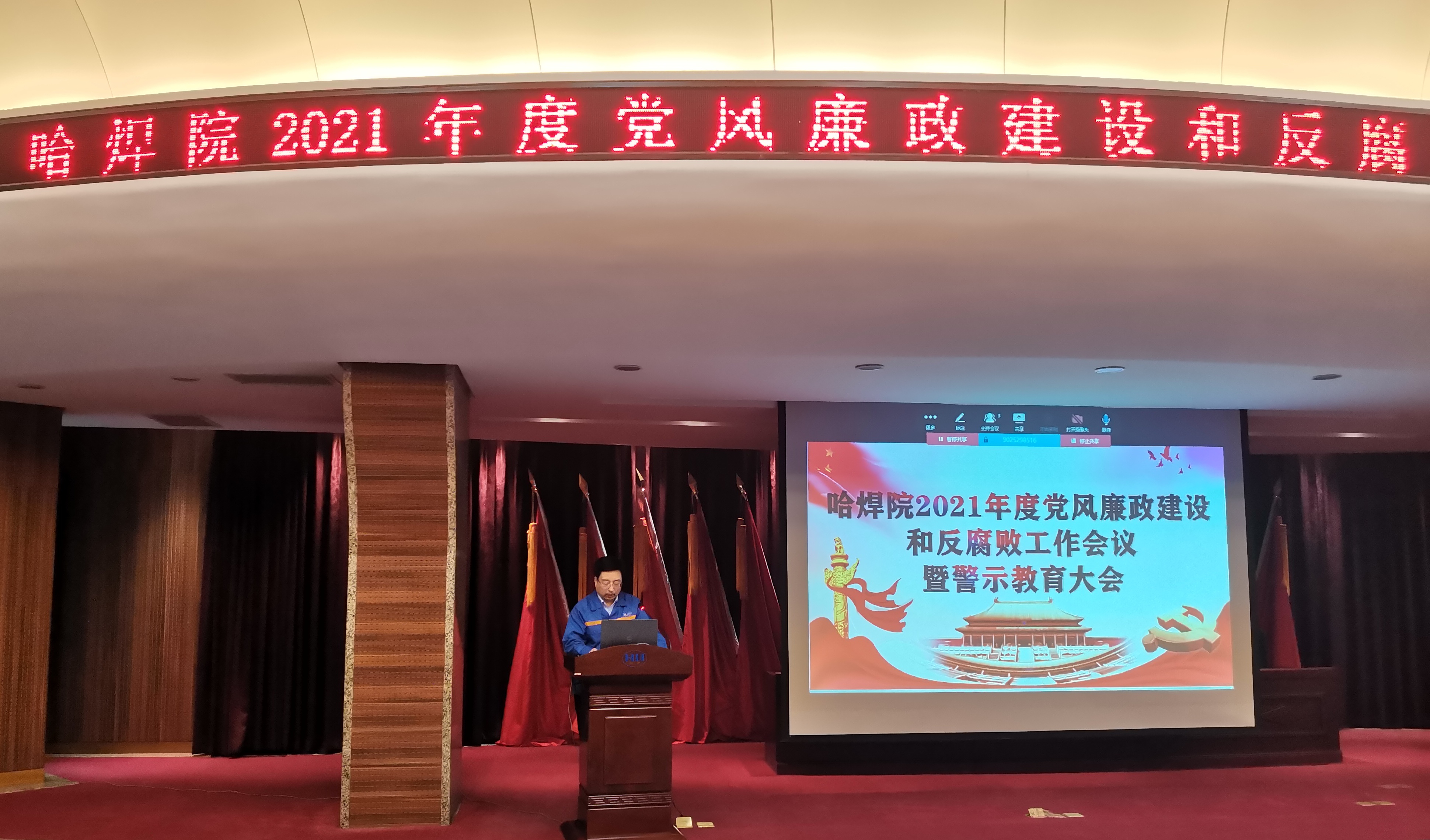 為貫徹落實國資委巡視反饋意見整改及2021年總院集團(tuán)黨風(fēng)廉政建設(shè)和反腐敗工作會議暨警示教育大會工作部署,全面總結(jié)2020年哈焊院黨風(fēng)廉政建設(shè)和反腐敗工作,部署2021年重點工作任務(wù),開展警示教育。哈焊院于3月31日在學(xué)術(shù)報告廳召開黨風(fēng)廉政建設(shè)和反腐敗工作會議暨警示教育大會,會議設(shè)主會場和華通分會場,哈焊院領(lǐng)導(dǎo)班子成員、中層干部、各黨支部書記及委員、關(guān)鍵崗位人員以及華通公司經(jīng)理層等相關(guān)人員參加會議。會議由哈焊院黨委副書記、紀(jì)委書記儲繼君同志主持。