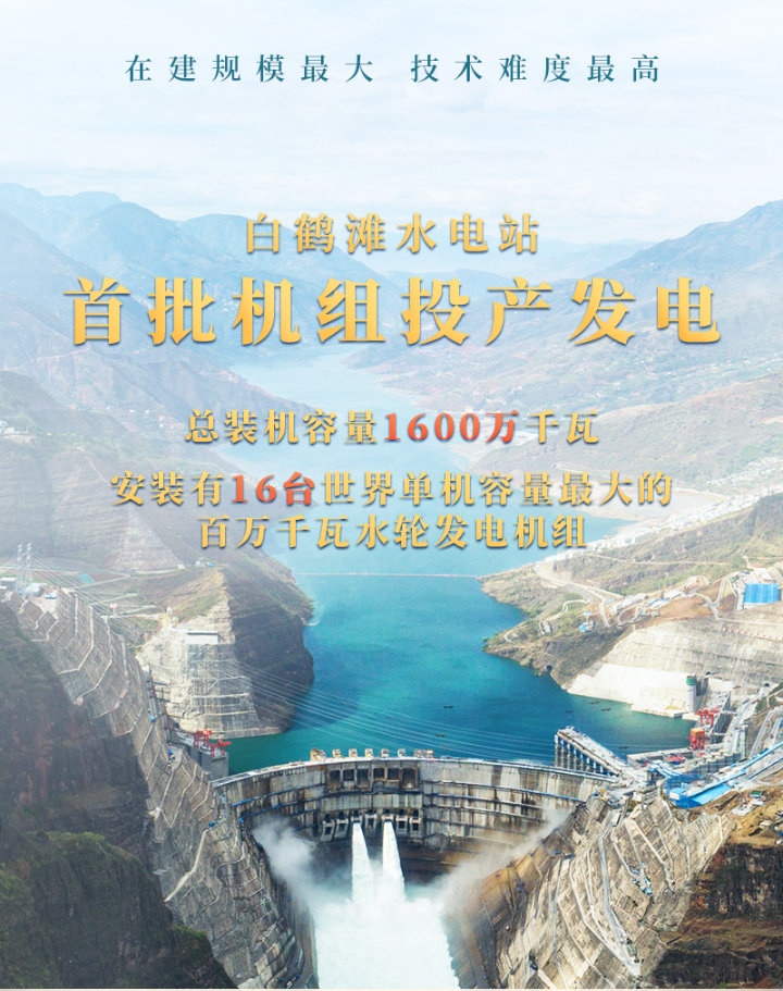 6月28日,金沙江白鶴灘水電站首批機(jī)組安全準(zhǔn)點(diǎn)投產(chǎn)發(fā)電。中共中央總書(shū)記、國(guó)家主席、中央軍委主席習(xí)近平發(fā)來(lái)賀信,表示熱烈的祝賀。