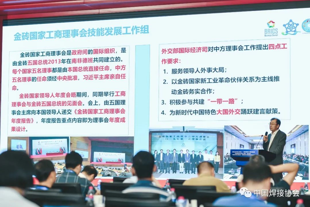 北京嘉克新興科技有限公司董事長劉振英博士做題為《深化金磚國家人才培養(yǎng)成果與展望》的報告。報告從金磚大賽的發(fā)展歷程,主辦承辦的各類賽事,推進(jìn)國家技能訓(xùn)練基地建設(shè)、實施“技能護(hù)照”計劃、舉辦技能發(fā)展與技術(shù)創(chuàng)新系列大講堂、成立未來技能發(fā)展與技術(shù)創(chuàng)新研究院、緊密與國際組織合作等幾個方面進(jìn)行了詳細(xì)的介紹,這些工作扎實有效的提高了我國焊接事業(yè)在國際舞臺的影響力與話語權(quán)。