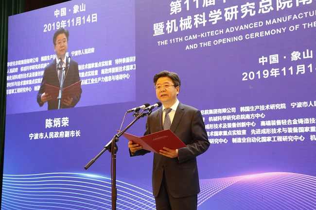 11月14日上午,機(jī)械科學(xué)研究總院南方中心在寧波象山揭牌。機(jī)械總院集團(tuán)副總經(jīng)理單忠德、寧波市副市長(zhǎng)陳炳榮、象山縣委書記葉劍鳴、南方中心副主任龍偉民、集團(tuán)產(chǎn)業(yè)發(fā)展部常務(wù)副部長(zhǎng)孟祥宇出席揭牌儀式,儀式由寧波市政府副秘書長(zhǎng)胡望榮主持。