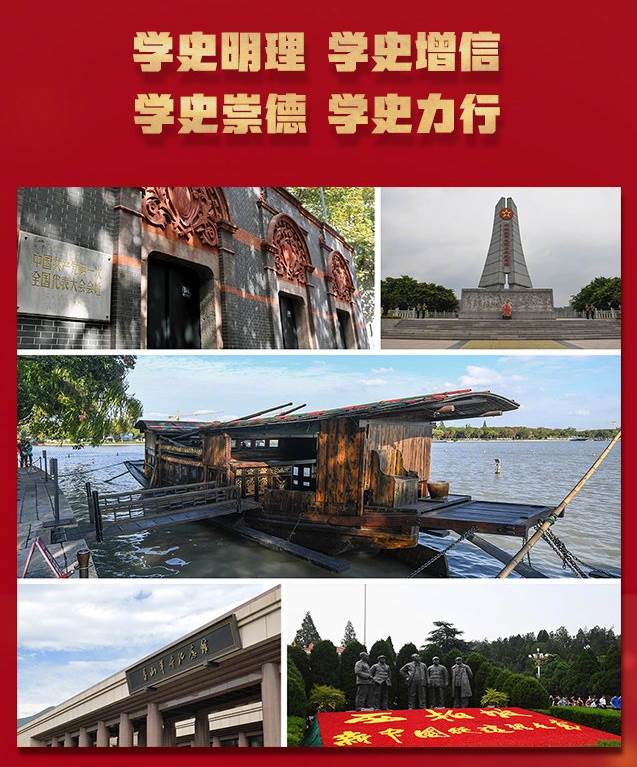 當(dāng)天晚上,中國共產(chǎn)黨第一次全國代表大會就正式開幕了。現(xiàn)在上海市興業(yè)路76號,就是當(dāng)時一大的會址,當(dāng)時是上海法租界望志路106號。各地黨組織派出的13名代表出席會議。共產(chǎn)國際代表馬林首先致辭,對中國共產(chǎn)黨成立表示祝賀。第二天,各地代表分別報告本地區(qū)黨、團組織情況。25日和26日休會兩天,起草供會議討論的黨綱和工作計劃。27日、28日和29日,連續(xù)三天舉行三次會議,對黨的綱領(lǐng)和決議進行了詳盡的討論。30日晚,因一名神秘男子的突然闖入而終止會議,代表們分批轉(zhuǎn)移到浙江嘉興南湖的游船上繼續(xù)進行。嘉興南湖,由此成為中國共產(chǎn)黨揚帆起航的圣地?!凹t船精神”也成為共產(chǎn)黨最具代表性的精神標(biāo)識。